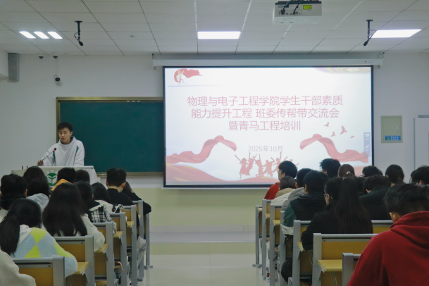 10月24日晚,物理与电子工程学院在9A205教室举办学生干部素质能力提升工程系列活动——新生班委“传帮带”交...