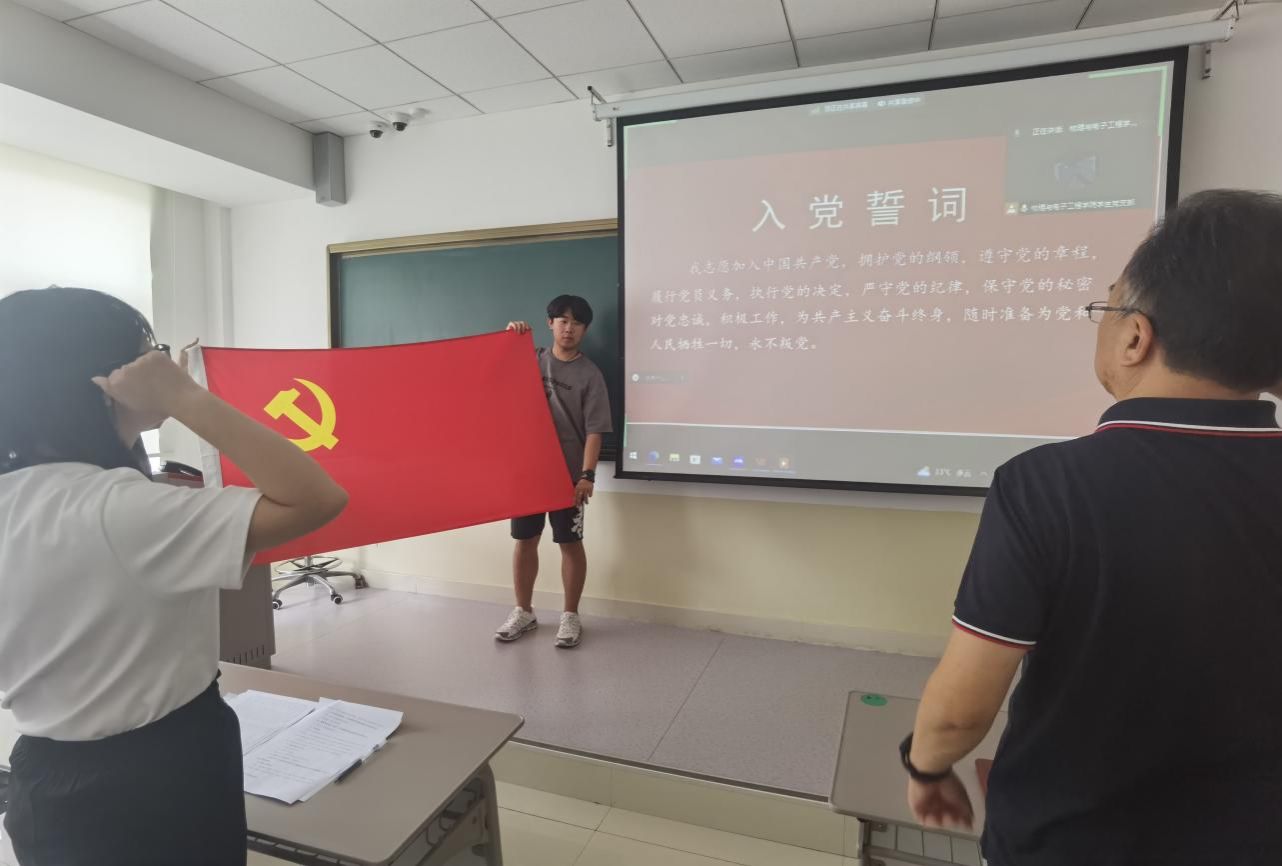 物理与电子工程学院党委书记卫建勋作总结讲话,对顺利转正的同学表示热烈祝贺,并对大家提出希望:一是希望大家加强政治学习。认真学习习近平新时代中国特色社会主义思想,学习党的路线、方针、政策,永远保持党的先进性和纯洁性;二是希望大家勇于担当,甘于奉献,不断成长,真正发挥先锋模范作用。同时,卫书记对另外三位延期转正的同学表示遗憾,鼓励三位同学继续加强学习,提升自身修养,以更高的标准严格要求自己,争取早日转正。最后,党支部全体党员重温入党誓词。
