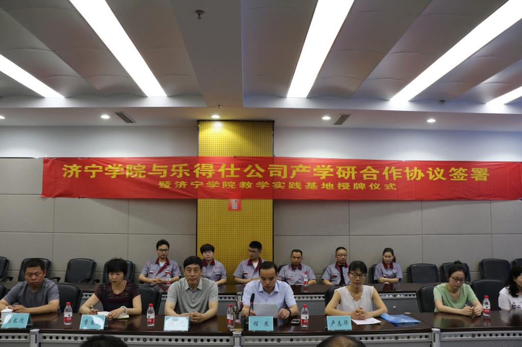 6月19日,济宁学院与山东乐得仕软木发展有限公司产学研合作签约暨实践教学基地揭牌仪式在高新区资本中心2楼路演厅成功举行,我校应用型人才培养基地管委会主任魏民,副主任李爱兰、物理与信息工程系主任程杰、材料专业主任卢志华、山东乐得仕软木发展有限公司董事长刘宝宣、总经理王洋、常务副总经理胡劲昌等领导出席了仪式,乐得仕公司员工及我校2015级材料科学与工程专业实习生一同参加了仪式。