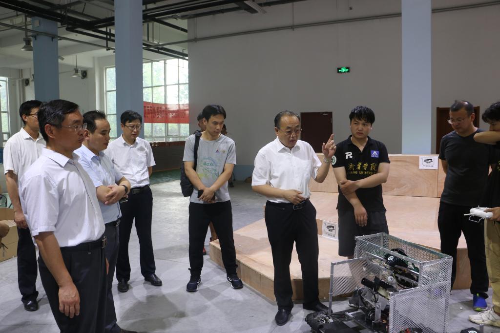 朱松涛听取了物理与信息工程(机械工程)系大学生科技创新团队活动介绍,观看了学校凌云机器人战队步兵机器人、工程机器人、英雄机器人、哨兵机器人、空中机器人等五个兵种机器人的现场演示,并与队员亲切交流,询问他们作品设计需要运用哪些专业知识、参加竞赛有哪些收获与感受,鼓励同学们把专业知识和科研创新、动手实践有效结合。朱松涛对物理与信息工程(机械工程)系大学生科技创新活动予以充分肯定,希望进一步结合学科专业特色,发挥大学生科技创新项目的作用,为应用型人才的培养做出应有贡献。