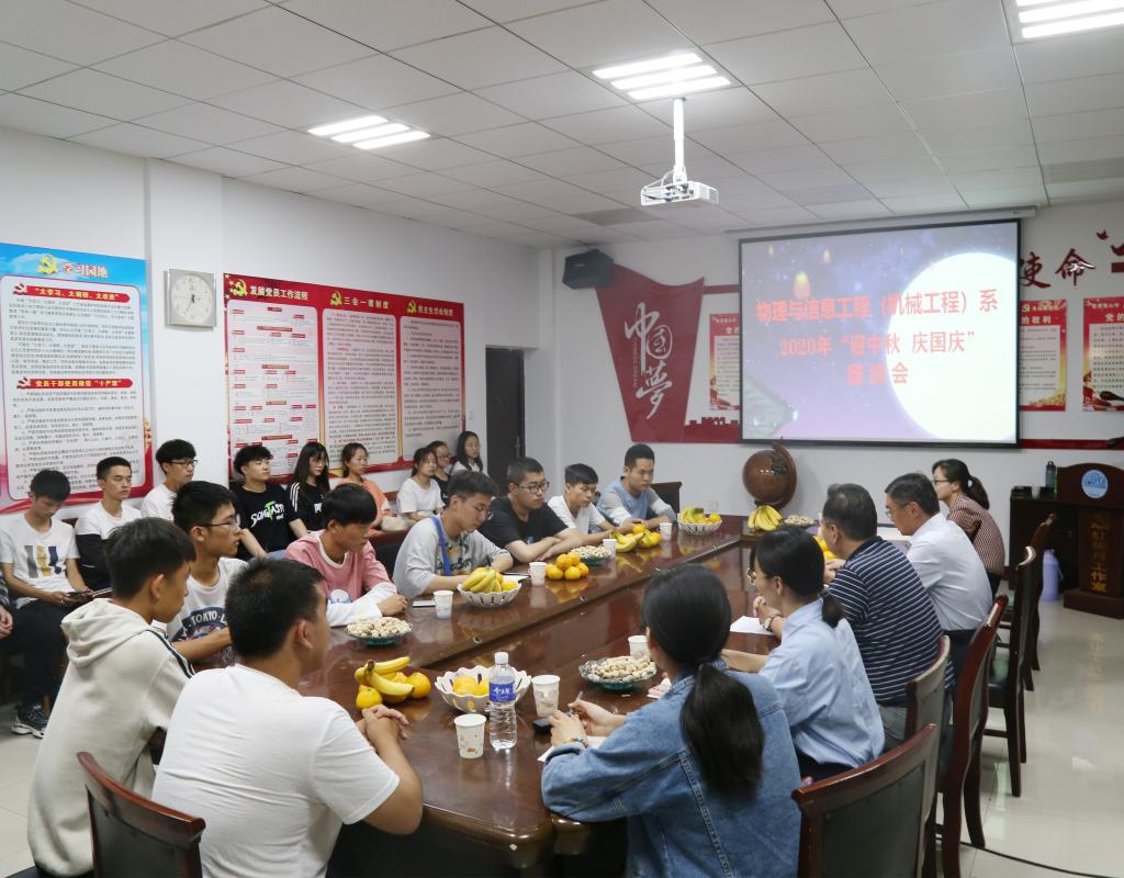 9月30日晚,物理与信息工程(机械工程)系在会议室举办“迎中秋,庆国庆”座谈会。系党总支书记孙文、赵爱华,系主任程杰,新生辅导员赵燕、郝晓琳、赵亚老师和2020级来自山西、吉林、黑龙江、安徽、江西、贵州、甘肃等7个省份及回族、苗族、侗族、满族、仡佬族、蒙古族等6个少数民族的35名新生参加了座谈会。座谈会以了解各民族文化,团结各民族力量,祝福国家繁荣富强为主题展开。