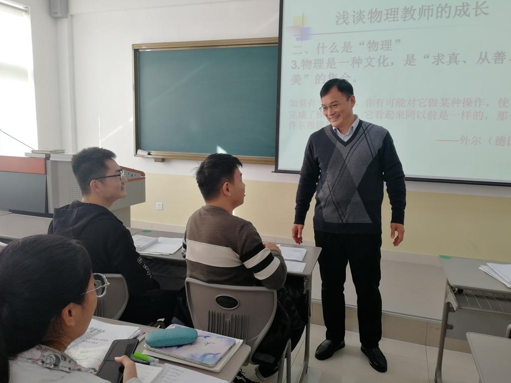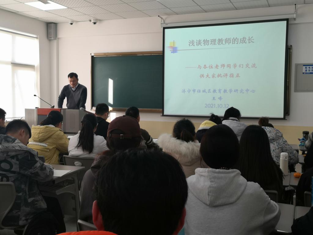 11月12日上午,在理科楼C301教室,K体育·(sports)官方网站聘请济宁市任城区教育教学研究中心教研员王峰为2019级物理学师范专业学生上课。