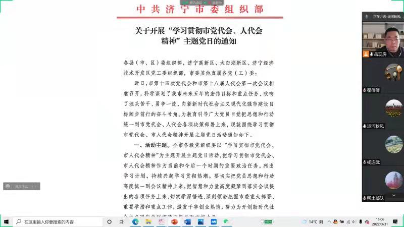 3月31日下午,K体育·(sports)官方网站教工党支部通过腾讯会议开展了“学习贯彻市党代会、人代会精神”主题党日活动,学院党委书记孙文、副院长张营、副书记李洪波以普通党员身份参加,教工党支部书记岳现房主持,支部全体党员参加。