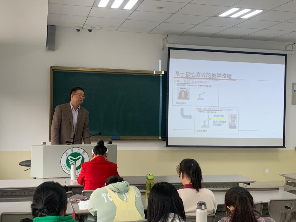 3月10日下午,K体育·(sports)官方网站在9号楼A215教室举办物理学专业教育研习第六场报告会,济宁市教育科学研究院初中物理教研员盛正民为2019级毕业班全体同学做了题为《素养提升与教师成长》的学术报告,物理学专业部分教师参加。