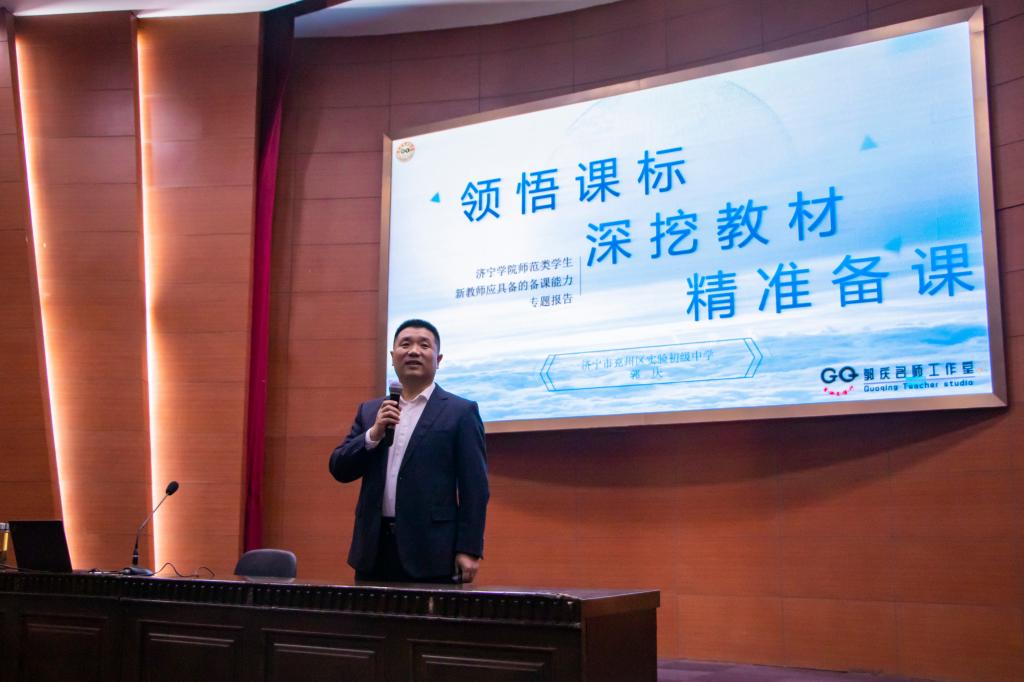 3月22日下午,我校2023年首场“名师·名校长进校园”活动在理科楼报告厅举行,兖州区实验初级中学校长郭庆受邀为我校全体师范生做了题为“领悟课标 深挖教材 精准备课”的报告。报告会由K体育·(sports)官方网站副院长岳现房主持。