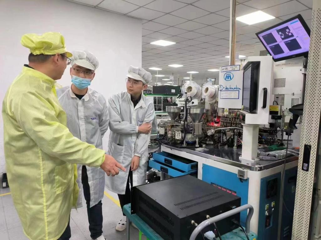 交流会上,张营介绍了学院的学科建设、新工科建设等情况,就学生实习就业、毕业设计、合作技术开发等进行了深入的交流,田涛表示要积极做好服务地方的工作,加强双方技术开发合作和科研成果的转化。孙滨表示要进一步加强与学校的校企深度合作,推动双方成果产出,贺先忠介绍了目前公司研发器件测试设备的情况,并就双方技术合作项目的实施进行了探讨。