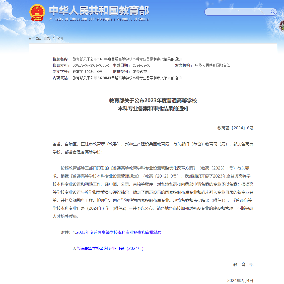 3月7日,教育部发布了《教育部关于公布2023年度普通高等学校本科专业备案和审批结果的通知》(教高函〔2024〕6号)K体育·(sports)官方网站申报的光电信息材料与器件本科专业成功获得教育部备案。光电信息材料与器件专业学制四年,授予工学学士学位,目前全国只有8所高校开设了该专业。