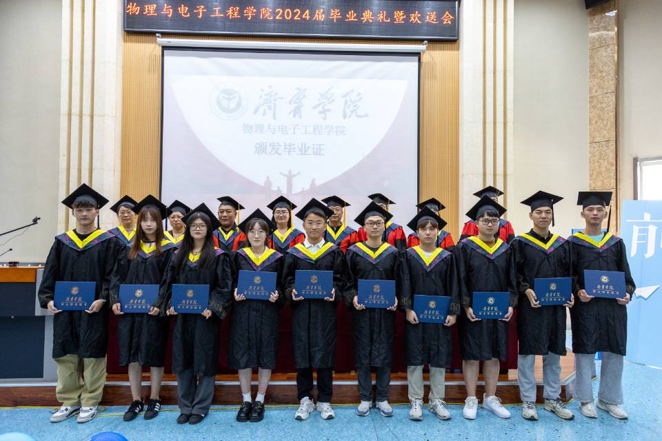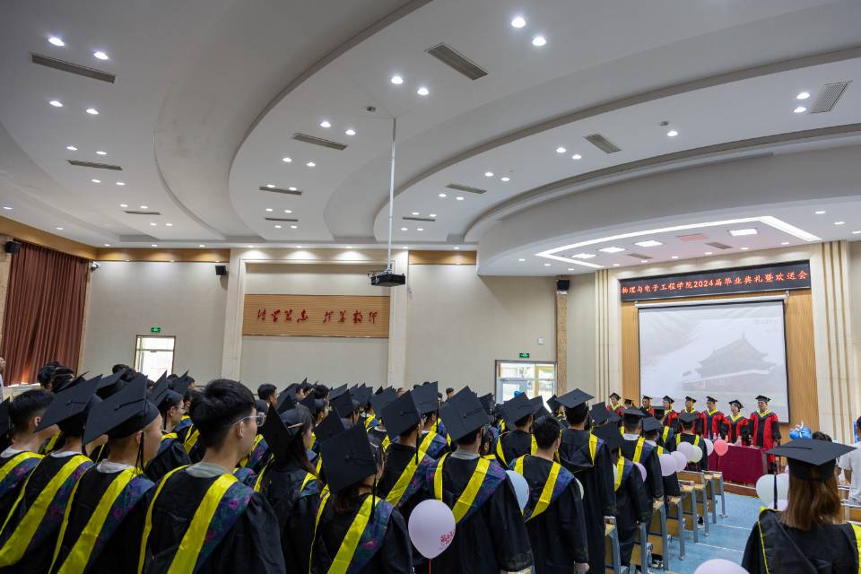 离歌起仲夏,桃李又芬芳,6月19日,物理与电子工程学院举行2024届毕业典礼暨毕业欢送会。学院583名毕业生将告别校园,奔赴五湖四海,开辟锦绣前程。学院党委书记卫建勋、副书记李洪波、学术副院长翟倩倩教授、宋军教授、刘文教授、王伟教授、卢志华教授、杜少将教授,教师代表、全体辅导员来到现场共同送别2024届毕业生。典礼由李洪波主持。