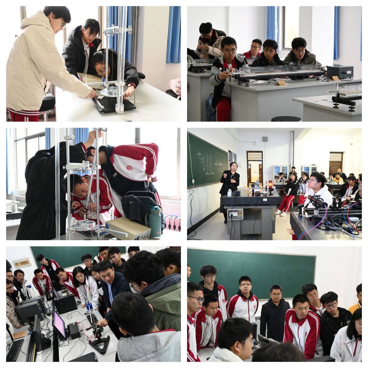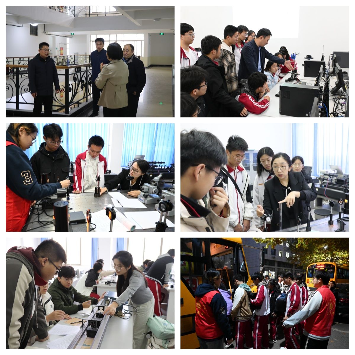 11月9日,兖州区实验高级中学91名高三学子走进物理与电子工程学院实验室,开展“光导智慧之路,力铸科学之魂,实验启迪物理之门”为主题的研学活动,在大学教授、博士等的指导下,同学们利用力学传感器、光学传感器、磁悬浮、光电门等实验仪器顺利完成了探究向心力的大小与半径、角速度、质量的关系、用单摆测量重力加速度的大小、测量做直线运动物体的瞬时速度、验证动量守恒定律等实验。学子们通过实际操作,亲身体验了物理的奇妙。有效激发了他们学习物理的兴趣,加深了对物理理论的理解。此次研学活动,开启了大中物理教育衔接工作的新篇章,物理与电子工程学院在服务基础教育、服务社会方面也迈出了坚实的一步。将有效促进高校和中学在高质量人才培养方面的提升。