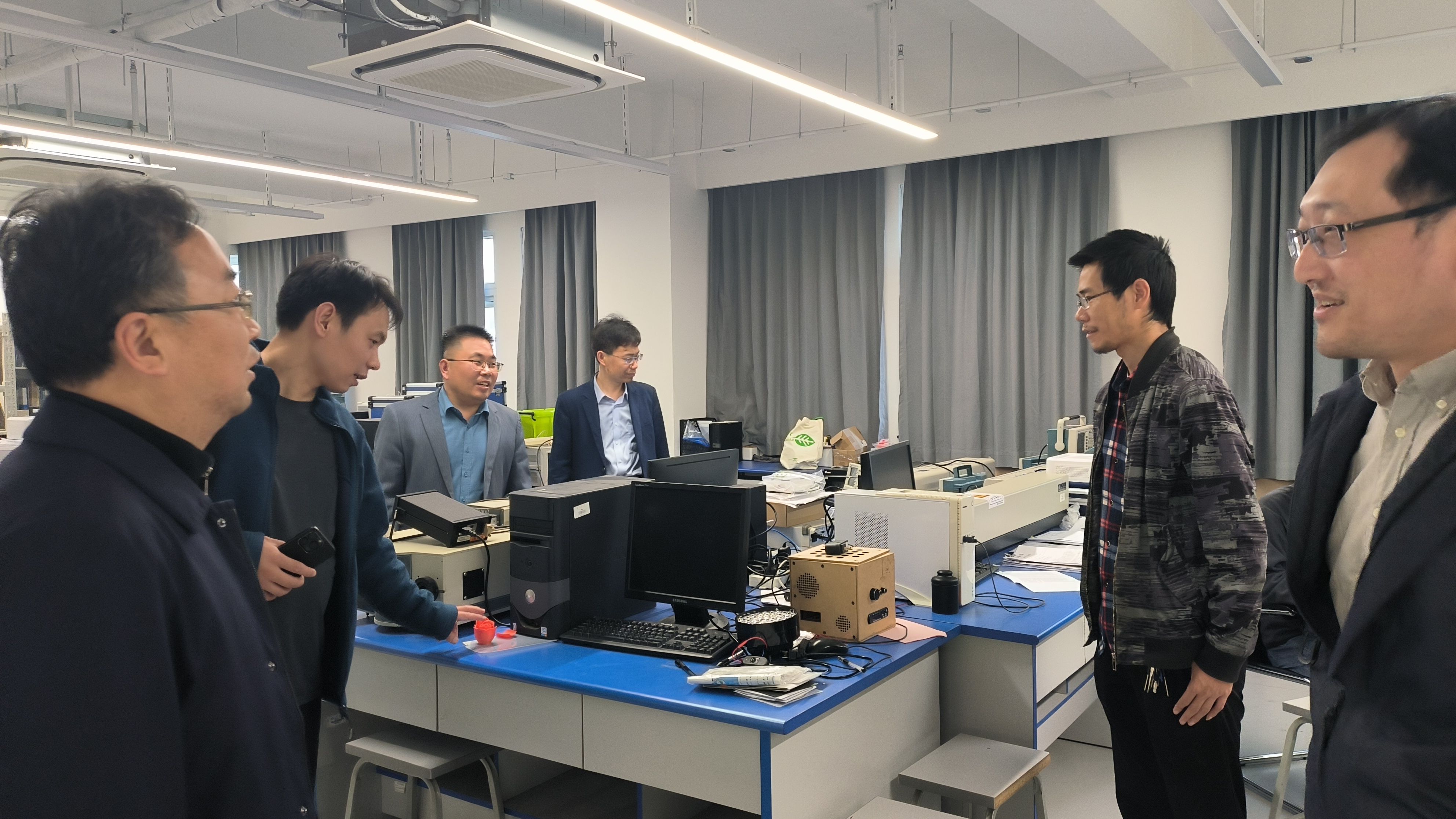 在南京大学物理学院学习交流期间,南京大学物理学院党委书记鞠艳介绍了南京大学物理学院概况,卫建勋和岳现房分别介绍了学校和学院的情况。随后在南京大学物理学院丁海峰教授、院长助理孙亮的陪同下一同参观了科研和教学实验室。