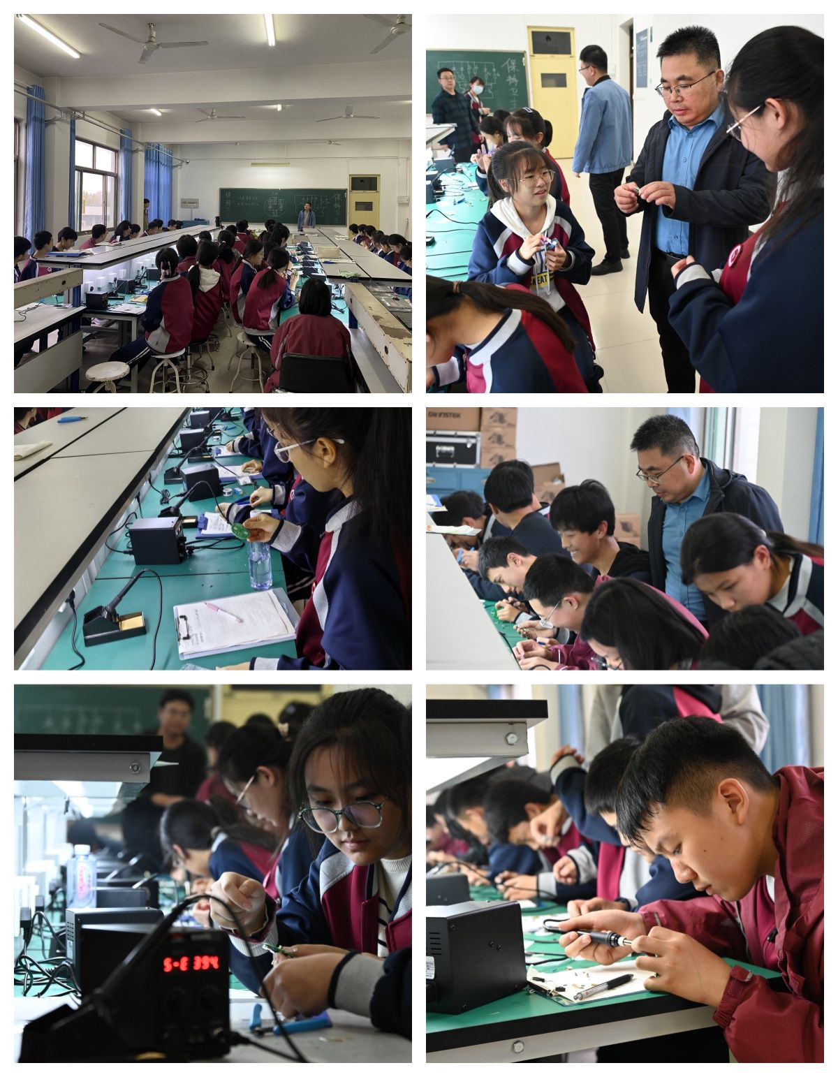 随后,学生们分组进入了物理创新实践环节,进行了LED旋转陀螺焊接等实践活动。在物理与电子工程学院老师的指导下,他们亲手操作焊接设备,完成了陀螺的制作,并通过实践深入了解了电磁学、动力学等物理知识。这一过程不仅锻炼了学生们的动手能力,还激发了他们对物理学科的兴趣和热爱。