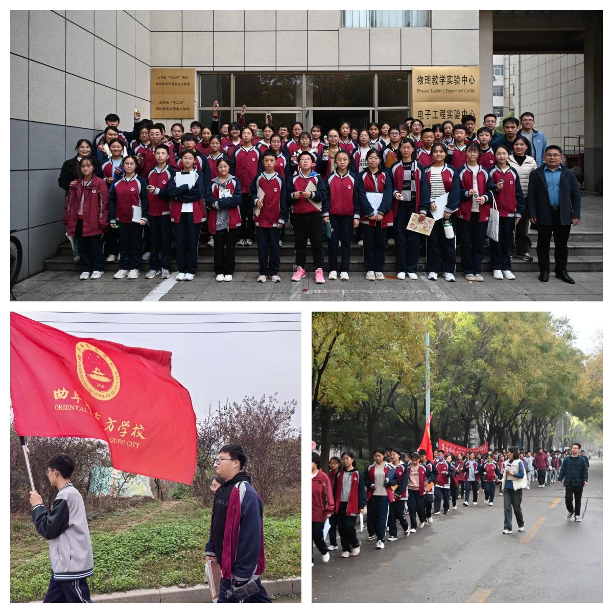 下午1时40分,曲阜东方学校的学生们在学校东门集合完毕,整装待发。他们身着统一的校服,手持鲜艳的队旗,精神抖擞地踏上了前往济宁学院的旅程。出发前,曲阜东方学校校领导发表了动员讲话,鼓励学生们珍惜这次难得的学习机会,积极参与各项活动,勇敢探索未知领域。