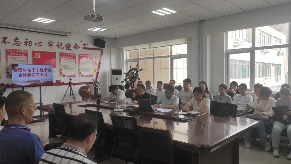5月22日下午,物理与电子工程学院在学院会议室召开全体教职工会议,会议由党委书记卫建勋主持。