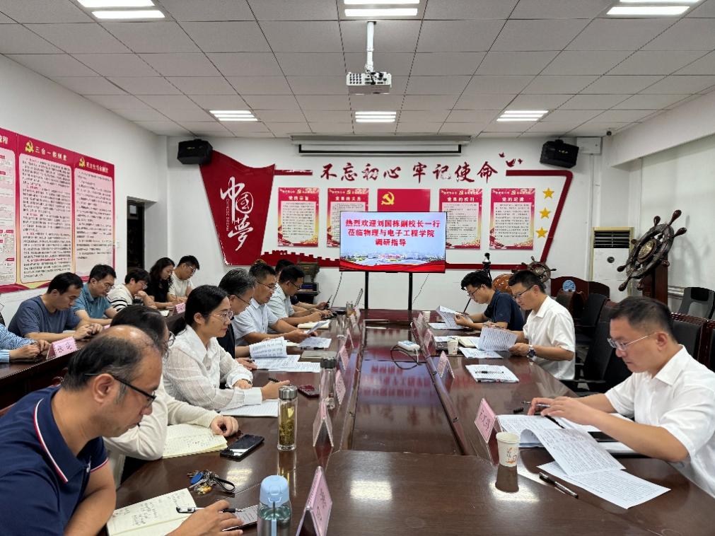9月16日下午,副校长刘国栋、科研处处长宋文路、副处长武泉森到物理与电子工程学院开展学科建设与科研工作专题调研。物理与电子工程学院党委书记卫建勋、院长岳现房等领导班子成员,学院骨干教师和青年教师代表参加了调研会。