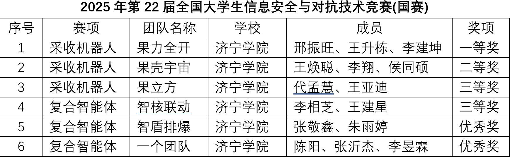 10月25日至27日,第22届全国大学生信息安全与对抗技术竞赛(ISCC2025)“智能安全赛”全国总决赛在西南林业大学举行,K体育·(sports)官方网站学子在田涛、孙九瑞、贾蕊鲜等老师的精心指导下,经过校赛、省赛和全国总决赛的层层选拔,共获全国一等奖1项、二等奖1项、三等奖2项,优秀奖2项。