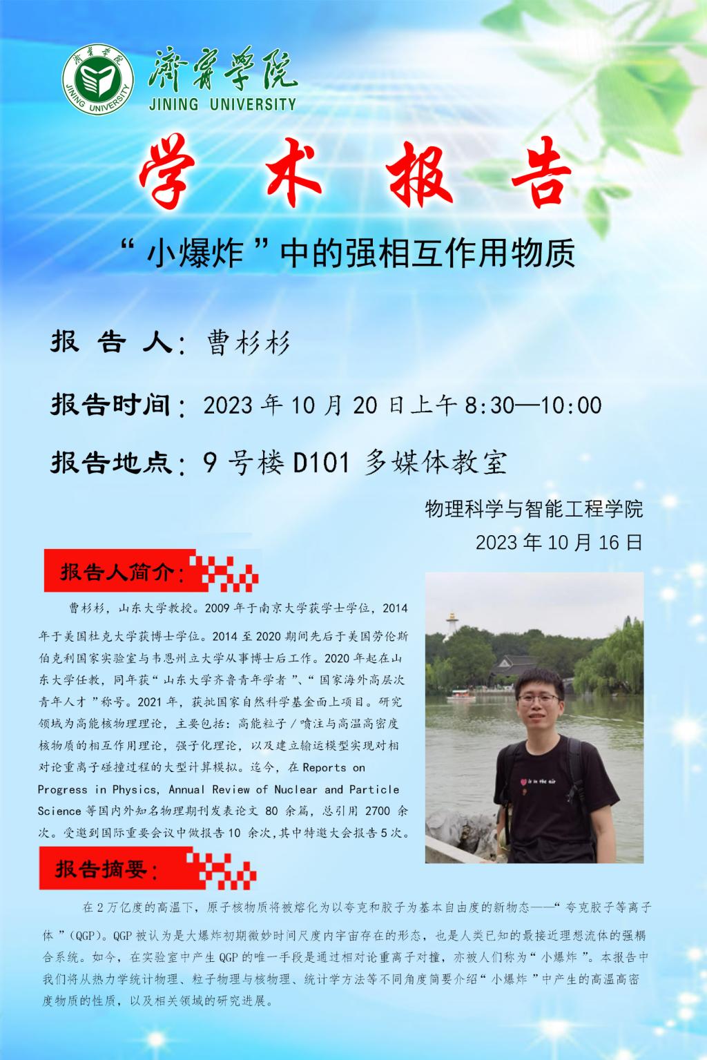 学术报告:山东大学曹杉杉教授——“小爆炸”中的强相互作用物质