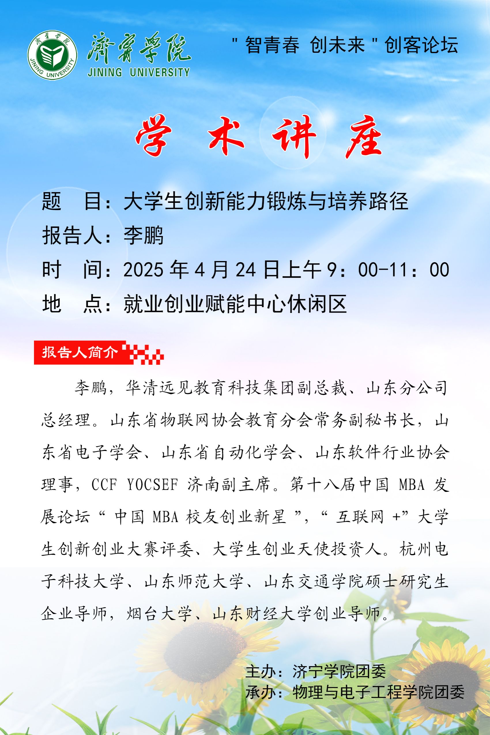 学术报告:华清远见李鹏——大学生创新能力锻炼与培养路径
