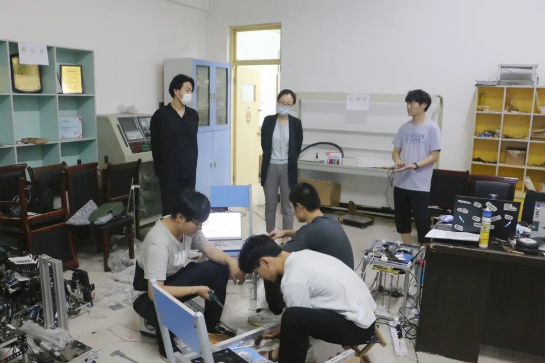 该赛事是济宁学院“同心战疫,青春在线”网络科技文化艺术节系列活动的重要赛事,旨在鼓励大学生积极参与科技创新实践,培养工程实践能力,提高团队协作水平,为全国机器人比赛提供后备力量。本次比赛比赛以“智慧融合、创新实干、协作拼搏”为主题,分线上理论常识考察和线下实操环节。实操环节中要求参赛队员组成机甲战队,对我校独立研发制作的多种机器人进行团队竞技,在激烈的竞争中打造先进的智能机器人。