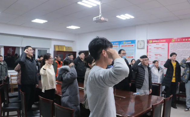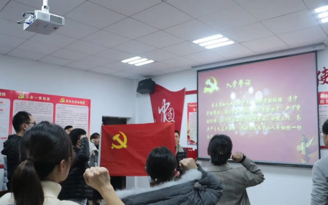奏《国际歌》后,由赵燕书记宣布新党员名单,全体党员同志与预备党员同志对着党旗庄严宣誓,宣誓后预备党员代表王一强同志与入党积极分子代表苟瑞诗同志分别发言,最后全体与会成员奏唱国歌。通过这次宣誓,激励了新入党同志和党员同志严格要求自己,坚定为共产主义事业而奋斗终身的信心和决心。让同志们热血沸腾,充满理想,努力实践,自觉奉献,激励着新入党同志和党员同志不断进取,奋斗终身。