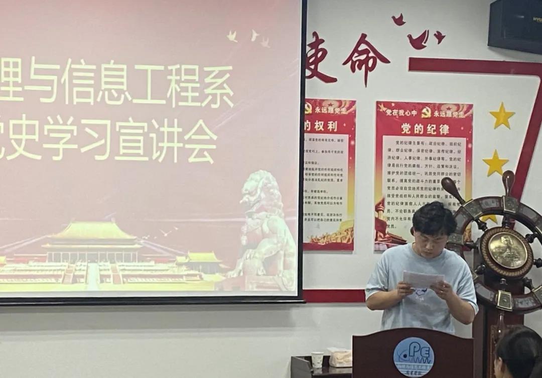 为深入开展党史学习教育,落实“学党史、悟思想、办实事、开新局”要求,使同学们更好地了解党史,物理与信息工程系于4月8日17:30在理科楼系会议室开展学生骨干学党史宣讲会。出席此次会议的有物理与信息工程系团总支书记赵燕老师,以及主要学生干部。