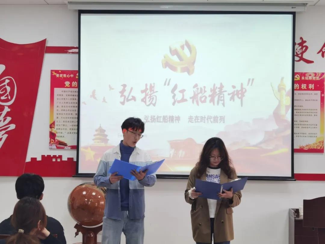 首先由学生干部为我们宣讲“红船精神”。两名同学声情并茂,慷慨激昂,使我们知悉在新的形势下,继承和弘扬“红船精神”,对于加强党的先进性建设,完成党的执政使命,具有十分重要的理论意义和实践意义。