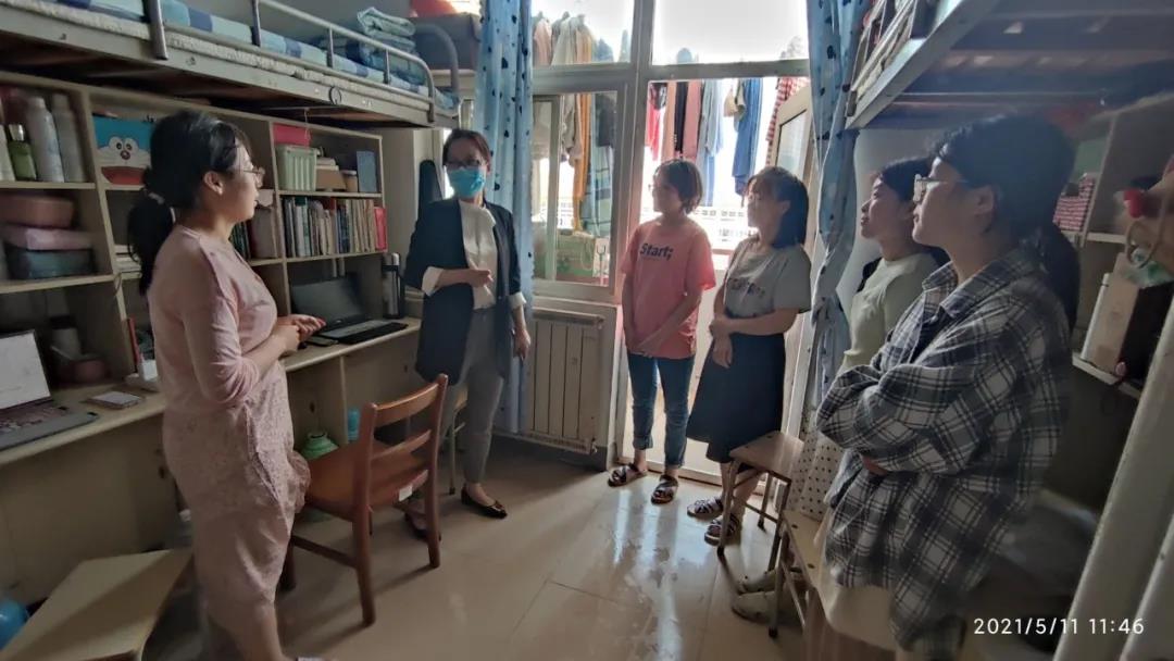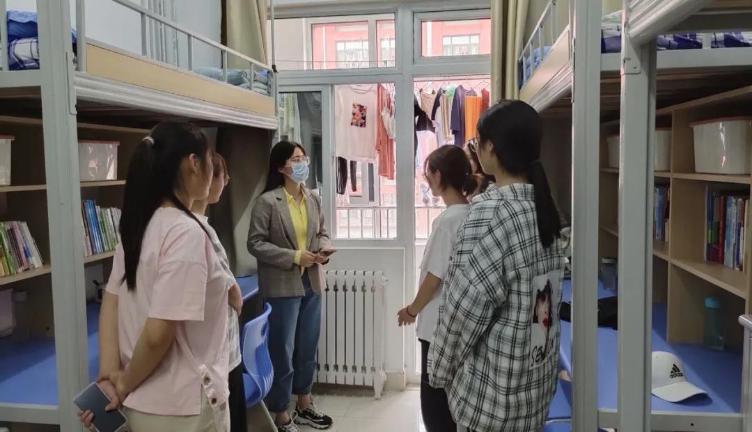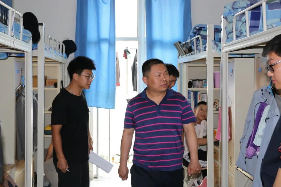 物理系领导老师与学生亲切交流,了解同学们生活学习、宿舍安全卫生等方面情况,叮嘱同学们要增强自律意识,高度重视宿舍安全问题,合力营造一个安全、健康、舒适的学习和生活环境,以饱满的热情和昂扬的精神投入大学生活中。
