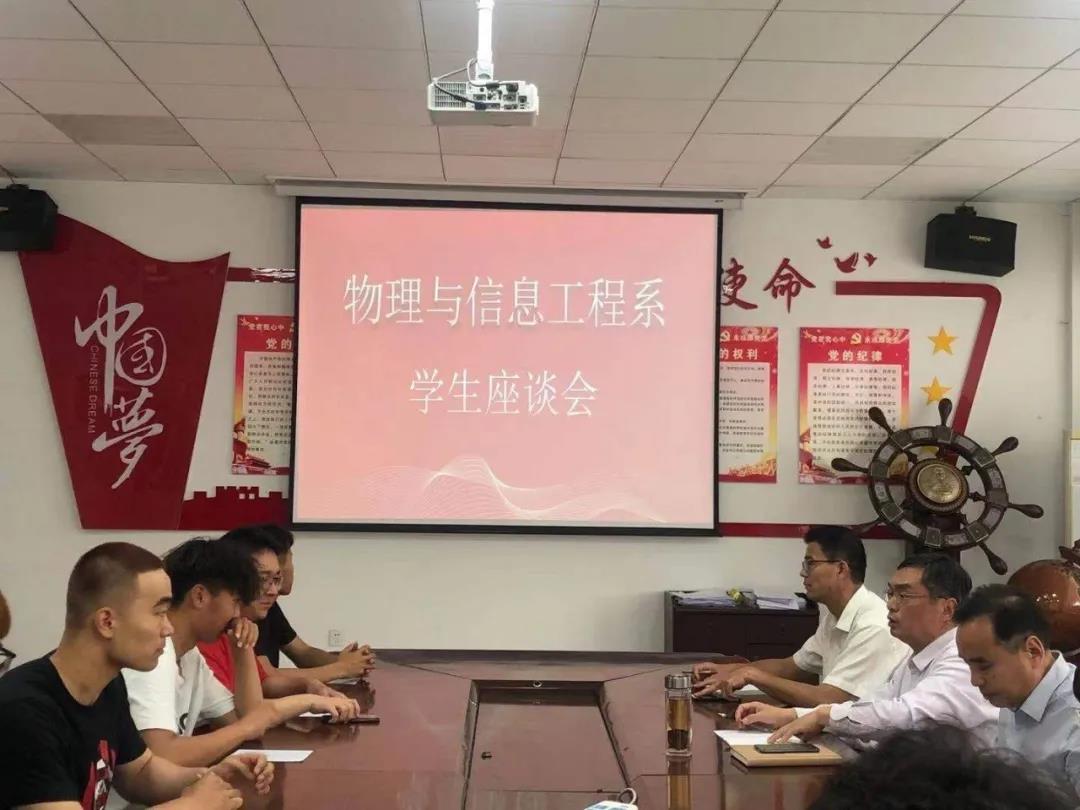 “非问,无以广识。”为帮助我系学生解决生活、学习问题,提高学习效率,规划有意义的人生,5月19日下午,物理与信息工程系在理科楼系会议室成功举办师生交流座谈会。物理与信息工程系党总支书记孙文书记、党总支副书记李洪波书记,物理与信息工程系主任程杰主任,辅导员郝晓琳老师和赵亚老师以及非毕业班班长学委出席此次会议。