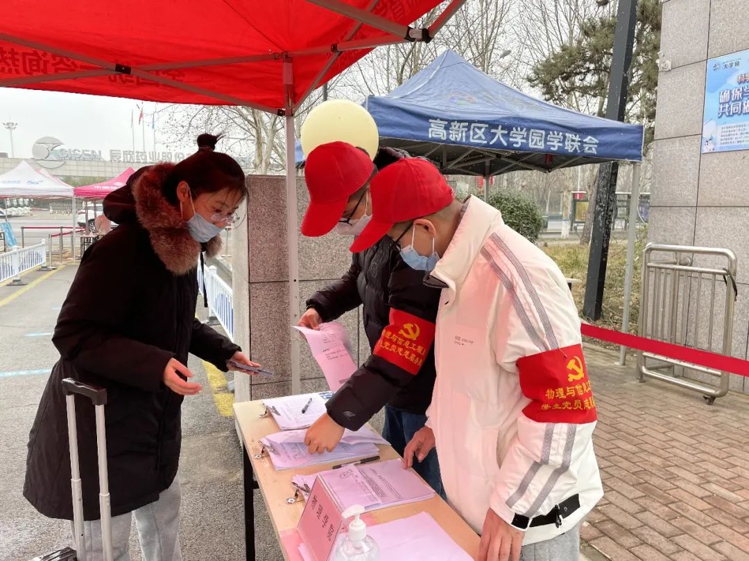 2月18日,是K体育·(sports)官方网站第一批学生返校。在校门口,志愿者们早早地来到大学园东门的志愿服务点,开始了一天的志愿服务,他们热情服务,耐心引导。在校口对返校学生进行消毒,提醒返校学生使用企业微信进行返校登记、审核返校学生是否有核酸检测记录、并督促返校学生在校内做核酸检测,他们在返校工作中用实际行动贡献自己的力量。