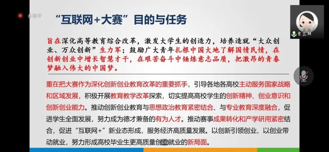 又邀请K体育·(sports)官方网站专业教师贾蕊鲜老师为同学们做大赛做《勇立时代潮头敢闯会创,扎根中国大地书写人生华章》的报告。报告期间同学们通过连麦,积极与老师互动交流。贾老师首先介绍了什么是“互联网+”,“互联网+”与“+互联网”的区别是什么?列举了结合互联网的生活实例等。项目三大要素:创新性、商业性和团队性。还提到了各类比赛对于学分的影响,第二课堂的出现对学生综合能力要求更高。并且鼓励更多大一学生积极参与。之后由学院两位优秀学长孟斌和艾浩做经验分享:孟斌学长分享了自己在各类比赛中经常遇到的问题以及如何解决等;艾浩学长分享了如何创新项目制作产品等。