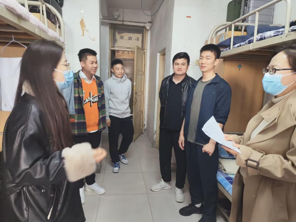 此次检查主要针对宿舍安全隐患及卫生情况进行全面排查。在检查中,老师们与同学们进行亲切交谈,询问学生的学习和生活情况,同时提醒同学们注意身体健康,加强体育锻炼,做好自我健康检测、当好自身健康第一责任人。