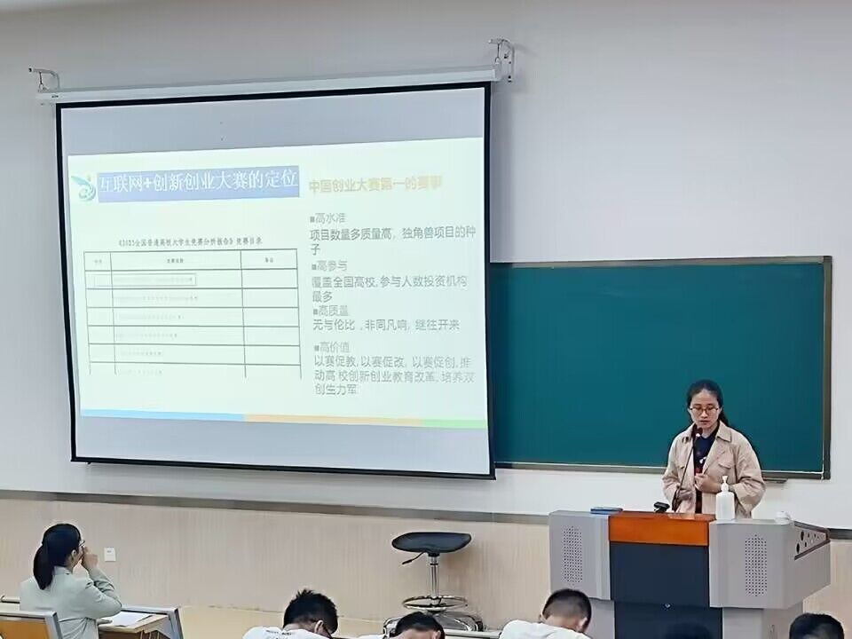 辅导员郝晓琳老师带领全体同学仔细学习了学校2023年“互联网+”大学生创新创业大赛的相关通知和要求,对并对其中的内容进行了详细的讲解。贾老师结合自己的实际参赛经验,让同学们更加清楚的了解比赛的主要内容和参赛流程;并且特别强调,参赛项目要能够紧密结合经济社会各领域现实需求,充分体现高校在新工科、新医科、新农科、新文科建设等方面取得的成果,而且参赛项目应弘扬正能量,践行社会主义核心价值观,要真实、健康、合法。