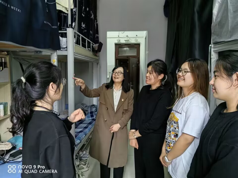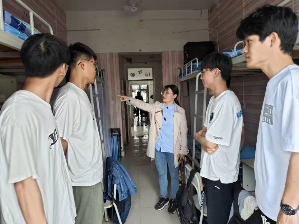 在检查过程中,辅导员老师赵杨洋、赵亚、郝晓琳佩戴党徽,带头亮明党员身份,深入学生宿舍与学生进行沟通交流,提醒同学们要积极整顿宿舍安全卫生、提高安全隐患防范意识、确保学生人身财产安全。