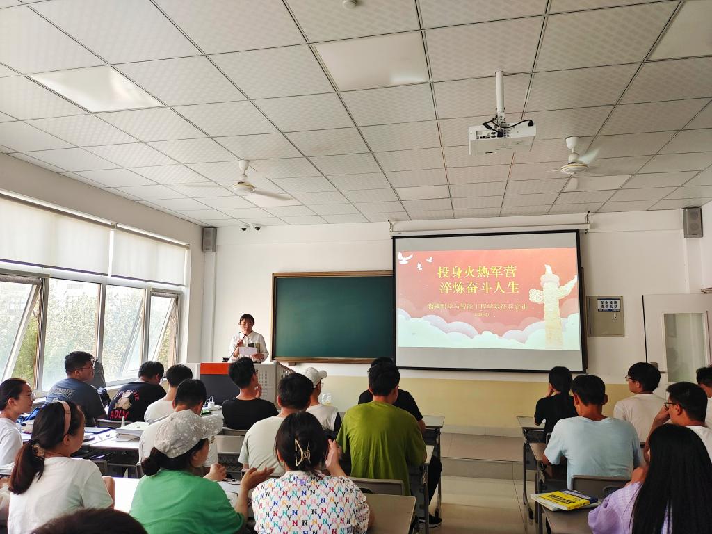为深入学习党的二十大精神,加强大学生国防教育,使学生更加全面地了解应征入伍的相关条件和政策,鼓励学生积极参军,5月18日,K体育·(sports)官方网站在9C204进行征兵宣讲。此次宣讲由学院辅导员郝晓琳主持,辅导员明强、征兵宣讲团成员及有征兵意向的同学参加。