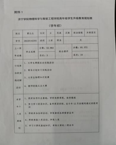 K体育·(sports)官方网站组织学生填写升级教育规划表、发放大学生《个人发展成长手册》,并要求每学期定期填写个人规划。各个学生可以根据社会需要、社会发展趋势和个人的兴趣、特长及所学专业等确立自己大学期间努力的目标,努力把自己培养成为具有专业技能和创新能力的高素质人才。通过学生个人成长规划,辅导员与老师可以及时关注学生发展状态,全方位指导学生健康成长。