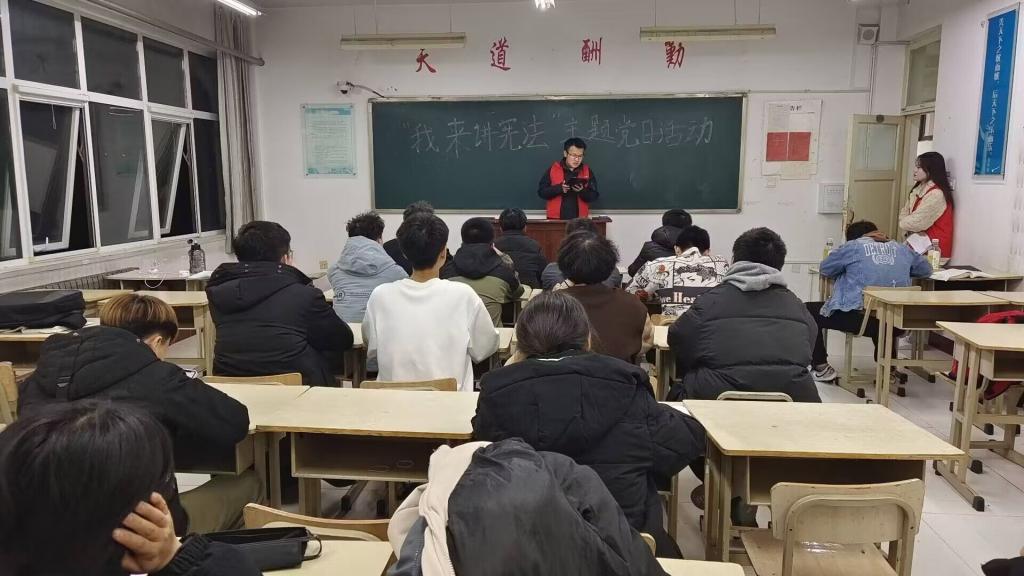 为深入学习贯彻党的二十大精神,贯彻落实习近平法治思想和习近平总书记关于教育的重要论述,12月5日晚,K体育·(sports)官方网站红柒名师工作室组织学生党员代表在9号楼自习室开展“我来讲宪法”党员进支部宣讲活动。