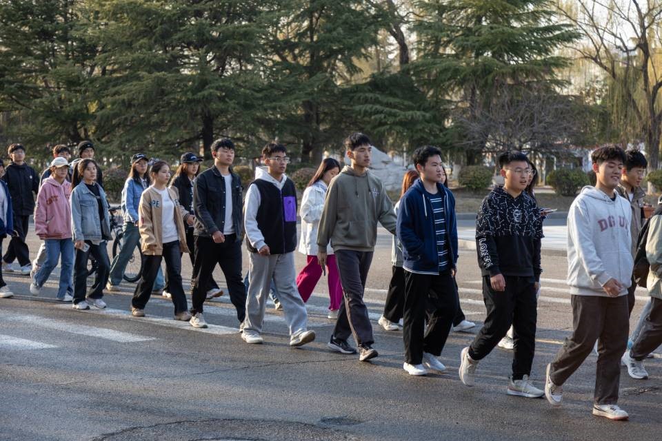 下午四点整,健步走活动正式拉开序幕,同学们从九号楼开始,环绕学校一周,最后至图书馆大楼梯前进行合影留念。同学们卸下了学习和生活的忙碌,在阳春三月,释放压力,欢声笑语,健步而行,感受着校园的萌动绿意、和煦春光,体味生活中的美好。