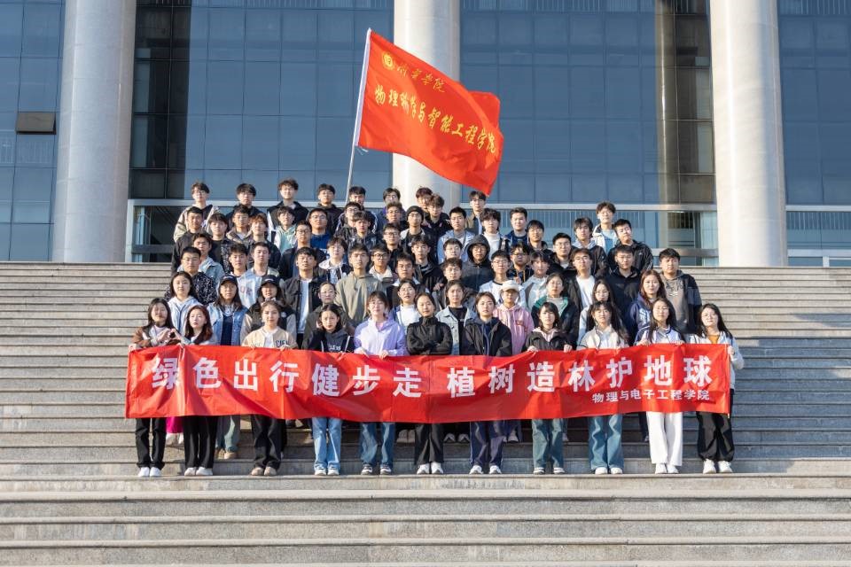 春回大地催新绿,健康环保正当时。3月12日是我国第46个植树节,当天,为提高同学们环境保护意识,倡导健康生活,物理与电子工程学院开展“环保健步走”活动,来自各专业的70余名同学踊跃参加。