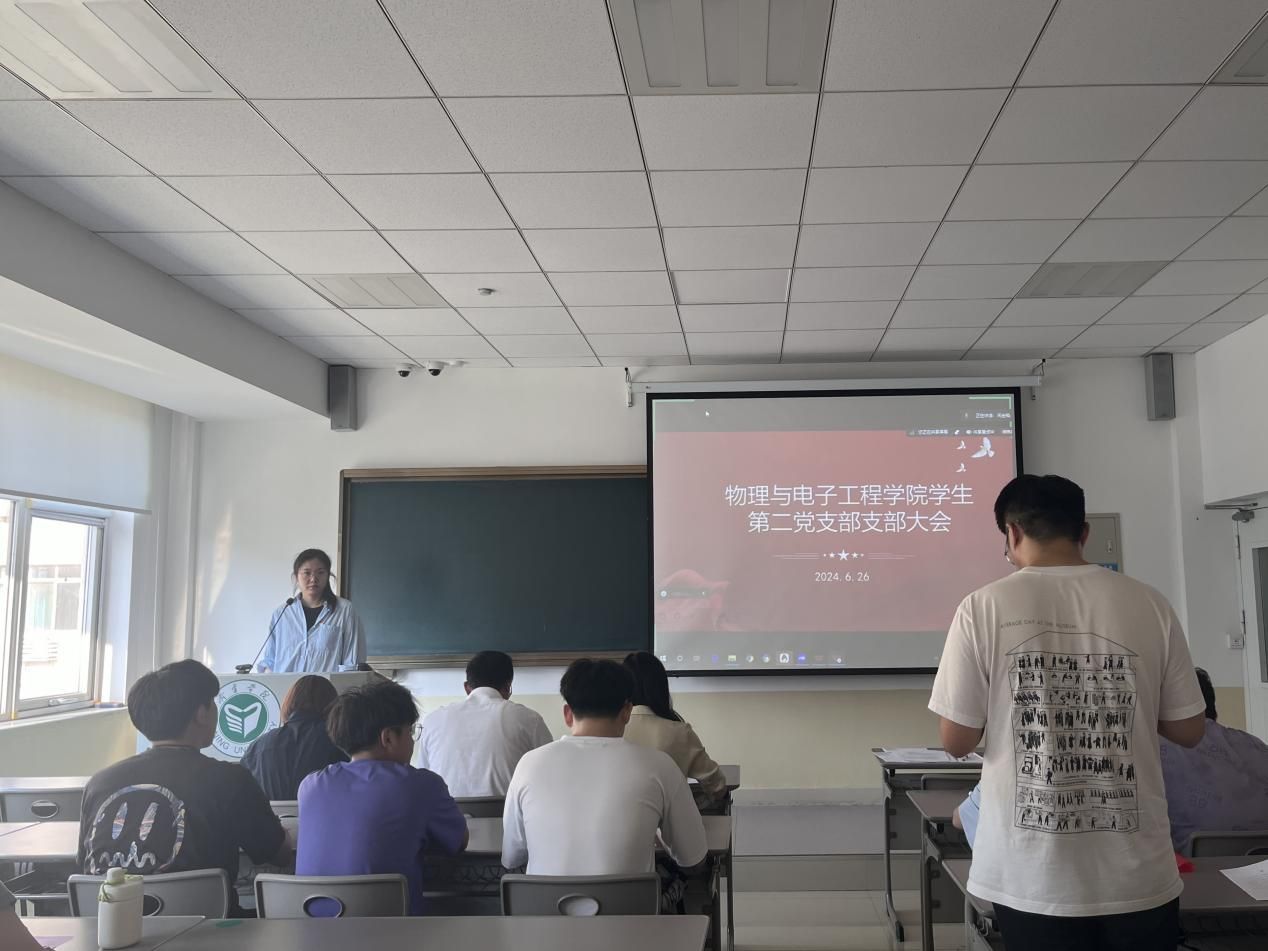 为进一步加强和推进学生党员队伍建设,切实提高学生党员发展质量,保持学生党员队伍先进性和纯洁性,高质量做好发展党员工作,物理与电子工程学院学生第一党支部、第二党支部于6月26日下午在9a214召开接收预备党员大会,学院党委副书记李洪波、全体党员及21名发展对象、入党积极分子代表参加会议。