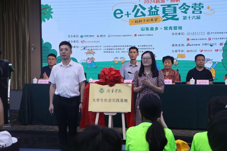 活动伊始,山东省青少年宫负责同志致欢迎辞,并介绍了山东省青少年宫的发展,他鼓励营员们珍惜这次难得的机会,勇于探索、敢于挑战,在夏令营中收获知识、友谊和成长。紧接着,学院志愿者代表王俊琪表示将弘扬志愿服务精神,全力以赴投入到夏令营中,以实际行动展现学院学子良好风貌。随后,赵杨洋和苏铖共同为济宁学院大学生社会实践基地揭牌,双方将在青年人才培养、社会实践、文化交流等方面加强合作。最后,陈新宏主任在讲话中指出,她期待每位小朋友都能够收获丰富的知识与技能,在团队中寻找到归属感和责任感,同时希望志愿者们能够积极投身到夏令营社会实践中,在志愿服务中发现自身潜能,实现人生价值。