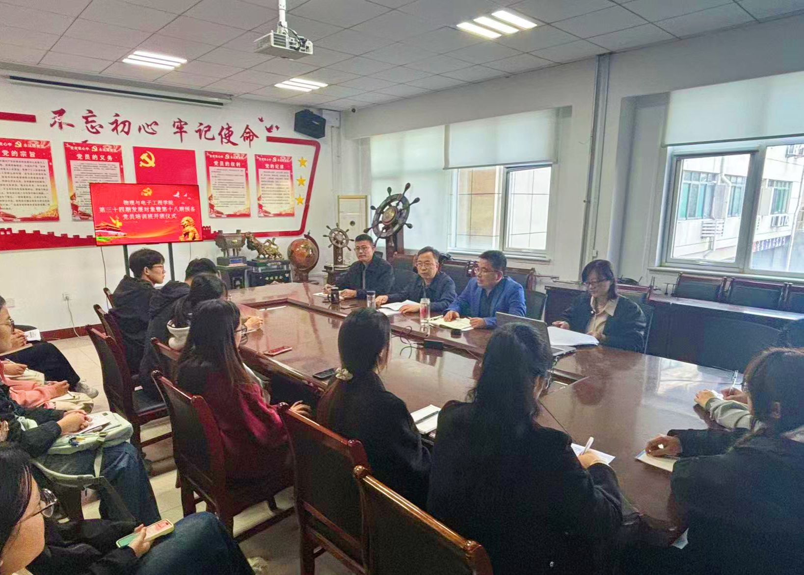 为提高发展对象思想政治素质和理论水平,10月24日,物理与电子工程学院在九号楼二楼会议室举办第三十四期发展对象暨第十八期预备党员培训班开班仪式。学院党委书记卫建勋、副院长岳现房、党委副书记李洪波、团委书记赵杨洋及参训学员参加会议。仪式由李洪波主持。