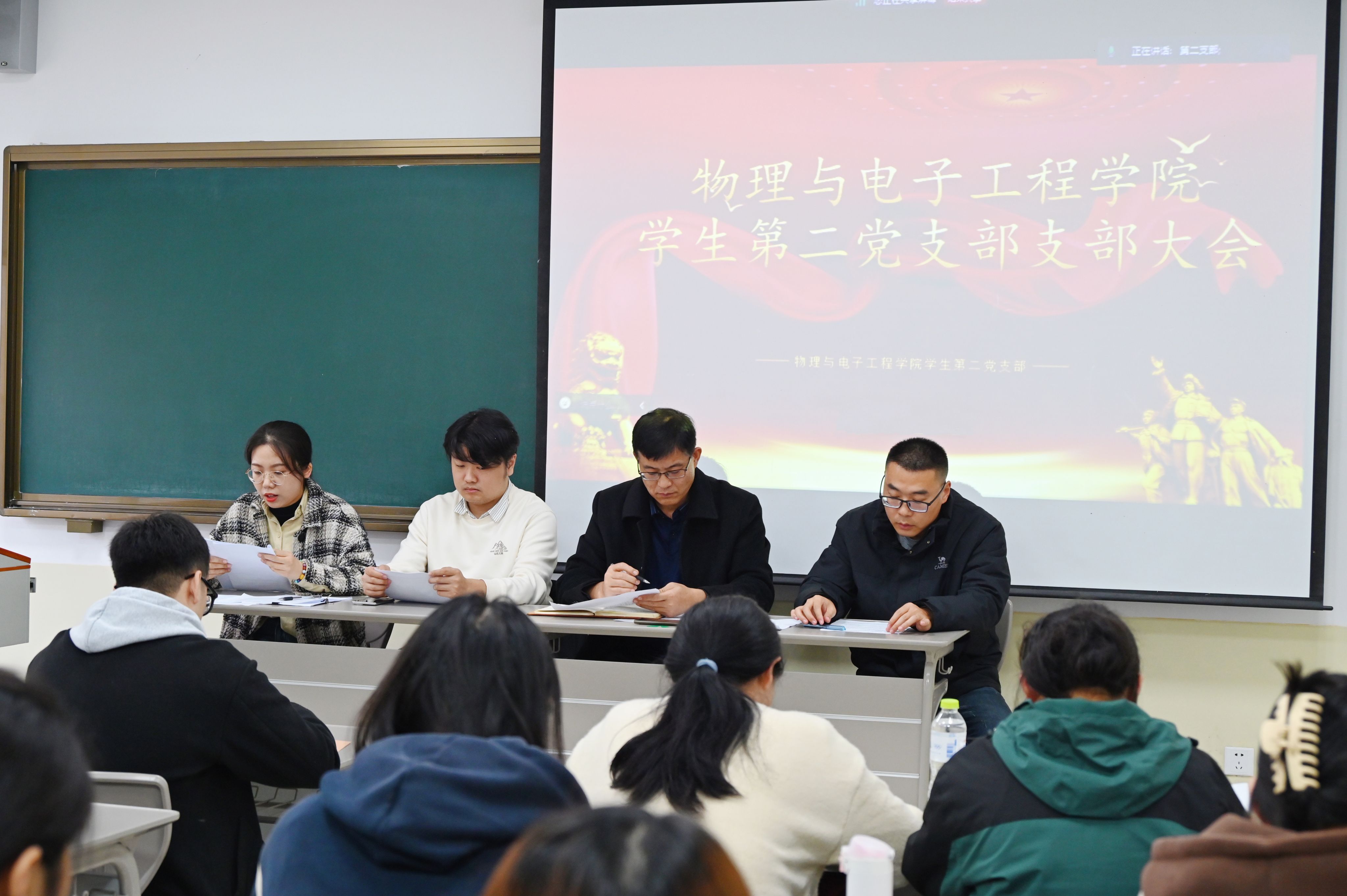为进一步推进学生党员队伍建设,切实提高学生党员发展质量,保持学生党员队伍先进性和纯洁性,高质量做好发展党员工作,物理与电子工程学院学生第一、第二党支部于11月14日下午分别在9号楼二楼会议室、A215教室召开接收预备党员大会,学院党委副书记李洪波列席会议,支部全体党员参加会议,会议由支部书记赵杨洋、赵亚主持。
