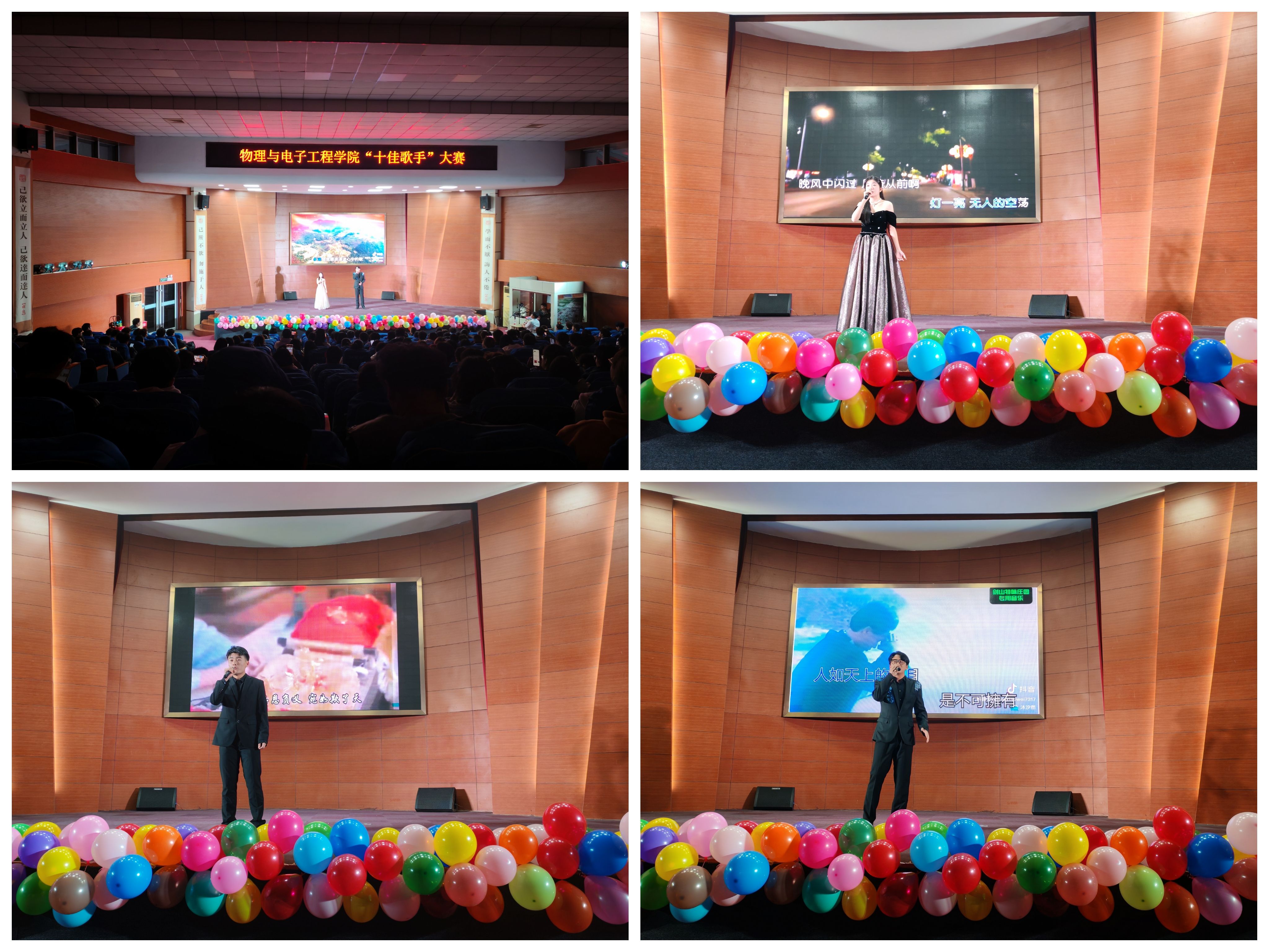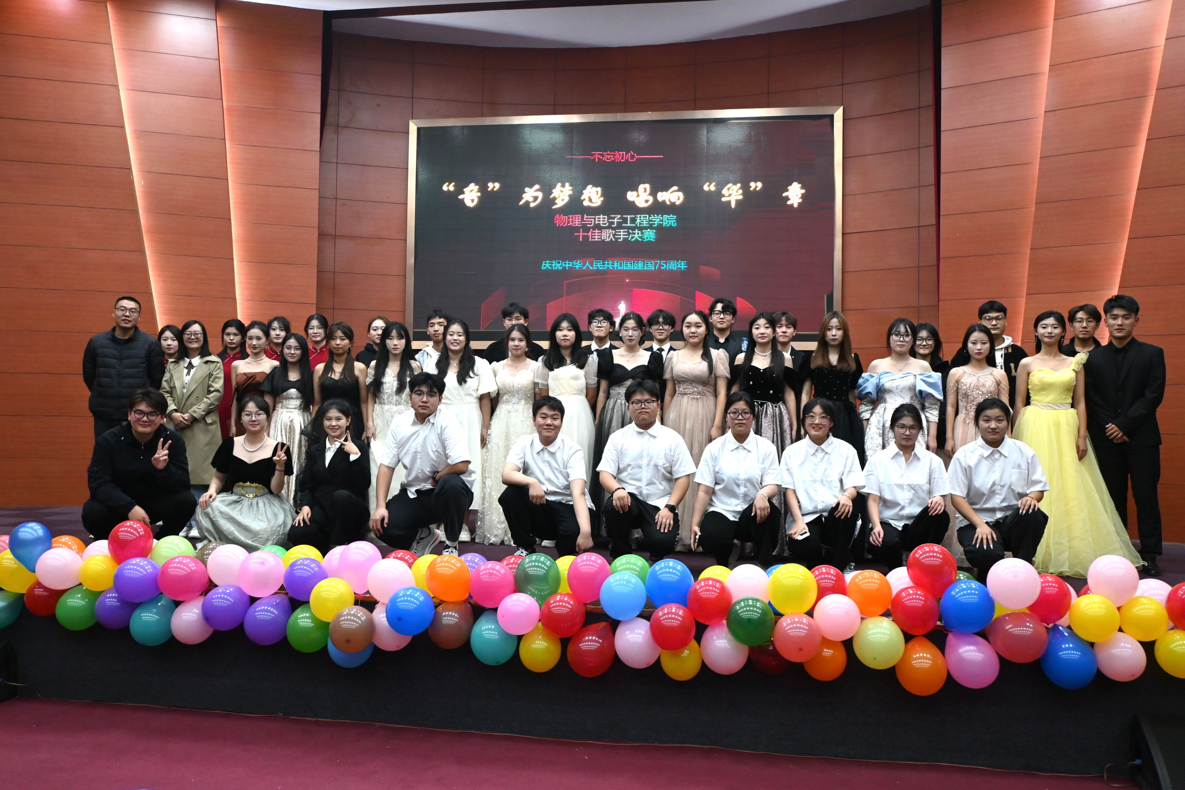 为庆祝中华人民共和国成立75周年,11月21日,物理与电子工程学院在理科楼报告厅举办十佳歌手大赛。物理与电子工程学院团委书记赵杨洋、辅导员明强及300余名学生参加。