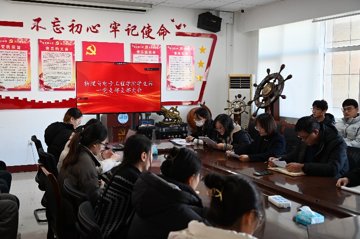 为进一步加强党员队伍建设,切实提高党员发展质量,增强党组织的凝聚力和战斗力,11月29日,物理与电子工程学院学生第一、第二党支部分别于九号楼二楼会议室、A312教室召开预备党员转正大会。学院党委副书记李洪波列席会议,支部全体党员参加会议,会议由支部书记赵杨洋、赵亚主持。