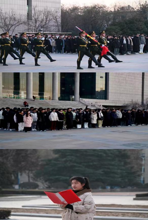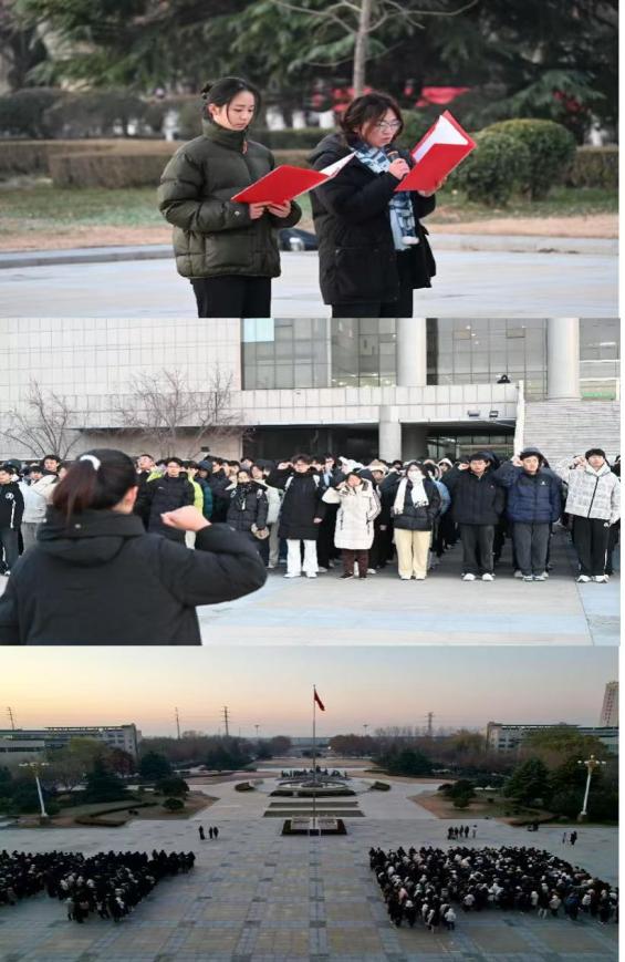 为热烈庆祝中华人民共和国成立 75 周年,激发同学们奋斗热情,12月16日,物理与电子工程学院在图书馆前举办“国旗下的青春誓言”主题升旗仪式。活动中,全体师生齐唱国歌。随后,学生代表进行爱国主题演讲,并宣读《宪法》重要内容,号召大家要坚定理想信念,弘扬宪法精神。大家高举右拳庄严宣誓,彰显了学院学子的爱国热情与崇高信仰。通过此次活动,不仅增强了学生民族责任感和时代使命感,更培养了学生的爱国情感和爱国意识。