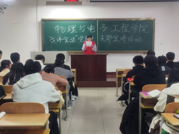 为了深入贯彻依法治国的基本方略,加强全院师生的宪法意识,对宪法的认识与理解,促进法治精神的传播与实践。连日来,物理与电子工程学院组织了一系列以“学宪法、讲宪法”为主题的教育活动。
