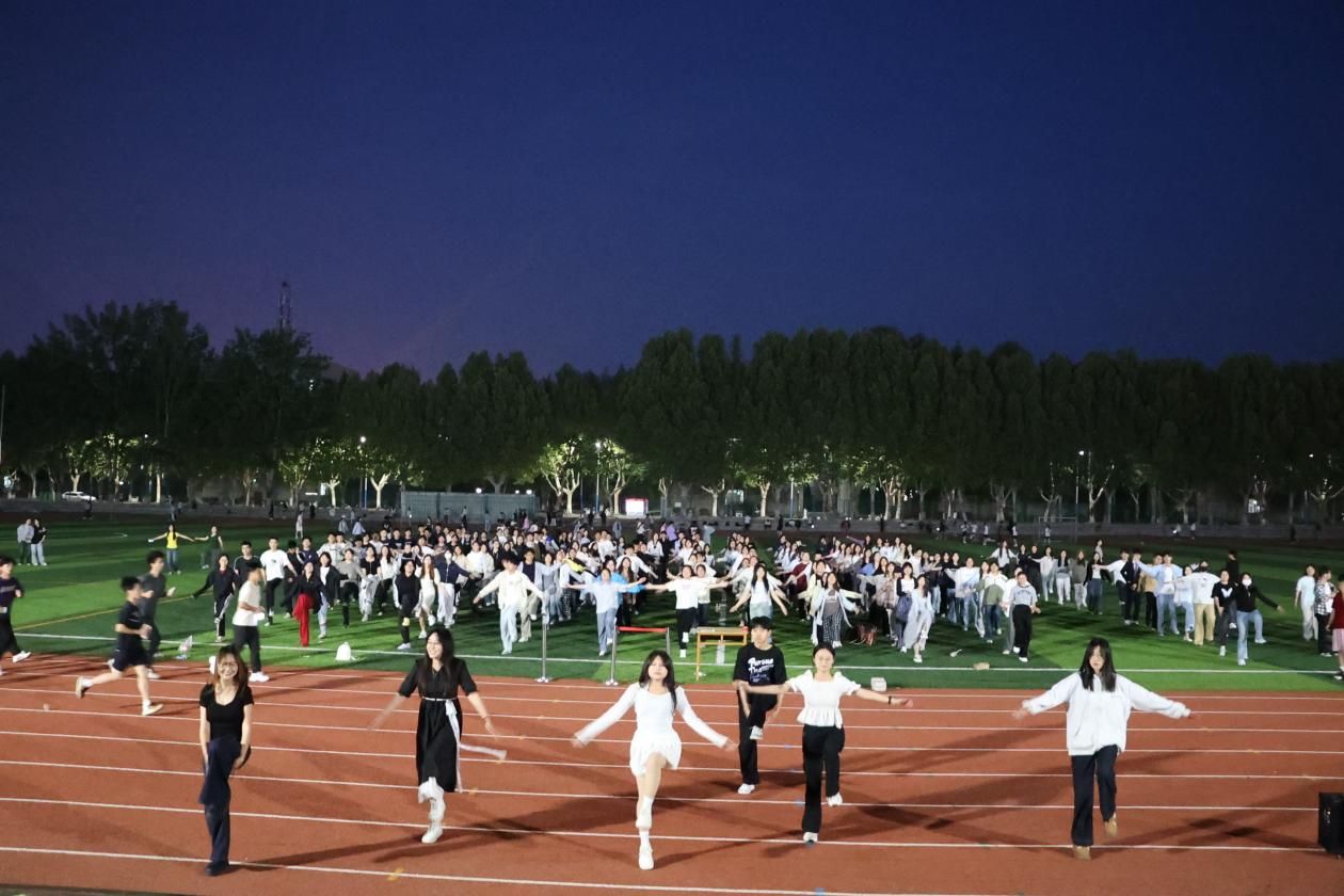 夜幕降临,西操场化身为欢乐的海洋。随着动感音乐响起,Ourparty社团成员率先登场,以一段热情洋溢的街舞表演点燃全场气氛。随后,活动进入自由舞动环节,流行舞、爵士舞、广场舞等多种风格的舞蹈教学与即兴互动轮番上演。同学们纷纷卸下学习压力,跟随节奏摆动身体,在舞步交错间感受舞蹈的魅力。现场还设置了趣味才艺表演环节节,参与者通过合作挑战和即兴展示,展现出独特的青春风采,欢呼声、掌声此起彼伏。
