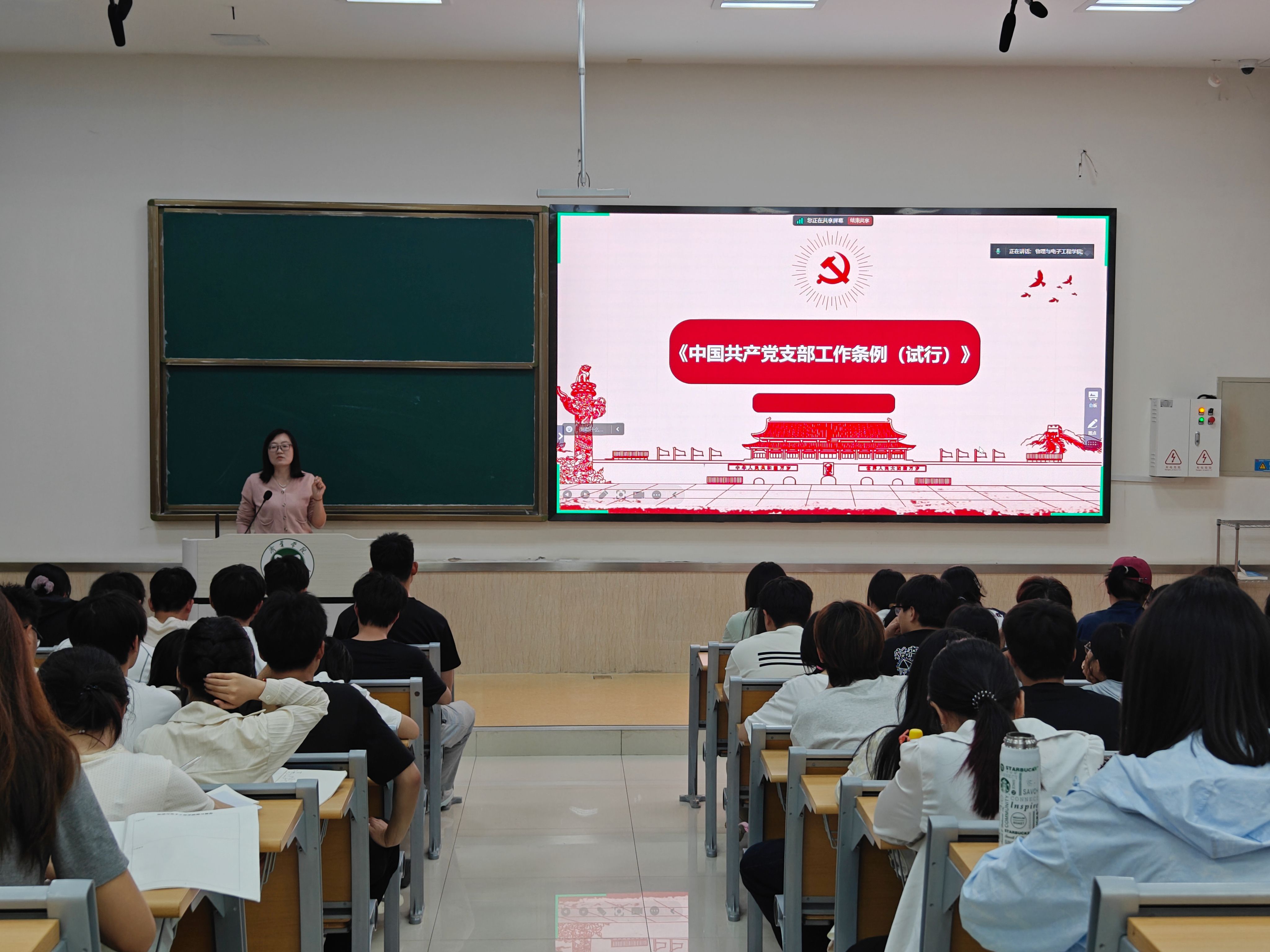 为进一步强化党的全面领导核心地位,传承发扬“支部建在连上”的优良革命传统,切实提升第四十四期入党积极分子对新时代全面从严治党战略部署和党支部建设关键意义的认知水平,5月14日,物理与电子工程学院于9#D102组织开展党校第四十四期入党积极分子专题辅导活动。本次培训由学生第一党支部书记赵杨洋主讲,带领全体学员深入研习《中国共产党支部工作条例(试行)》。
