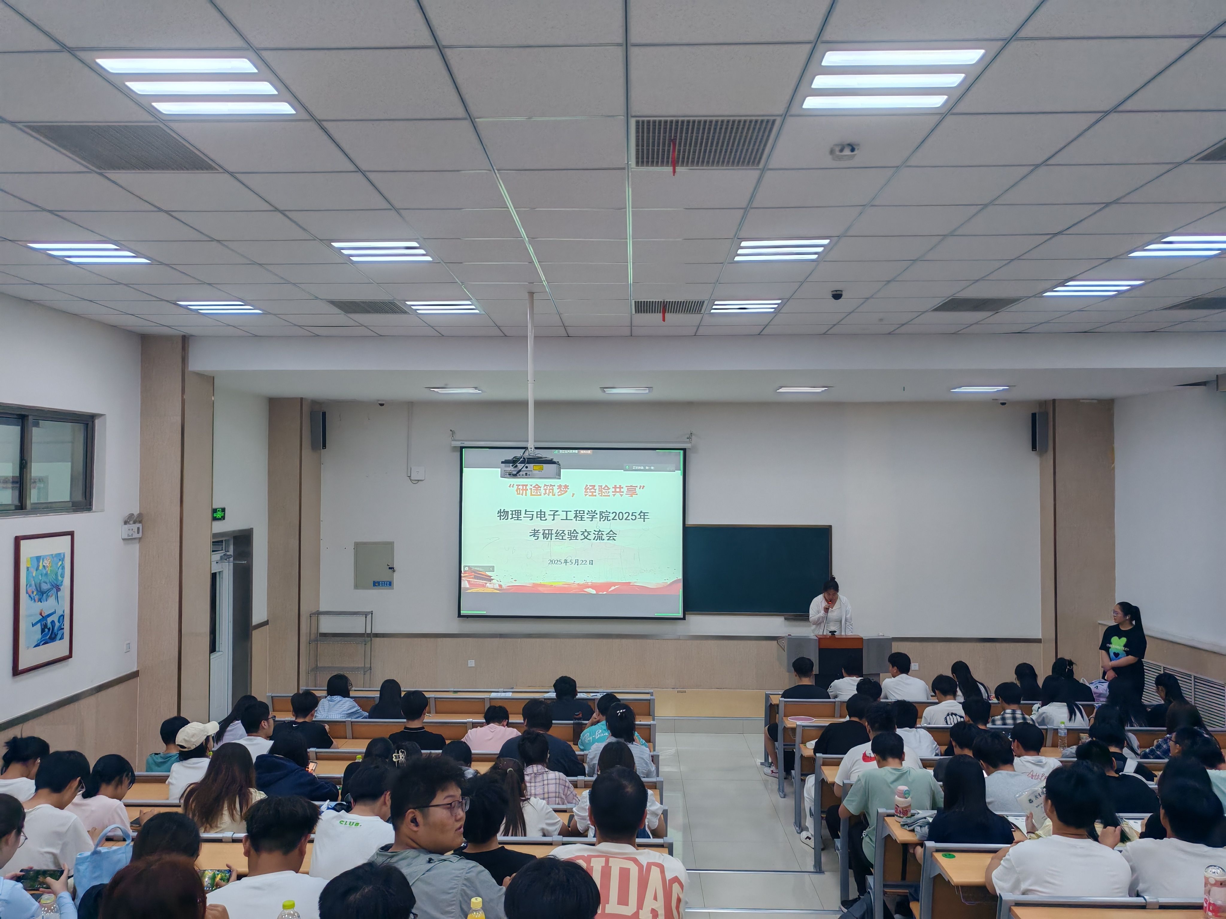 为助力学子明晰考研方向,破解备考难题,5月22日,物理与电子工程学院于9D201教室成功举办“研途筑梦,经验共享”物理学专业考研经验交流会。此次活动特邀六位2025届成功上岸的优秀学子作为分享嘉宾,学院全体物理学专业学生齐聚一堂,共赴这场干货满满的考研“盛宴”。