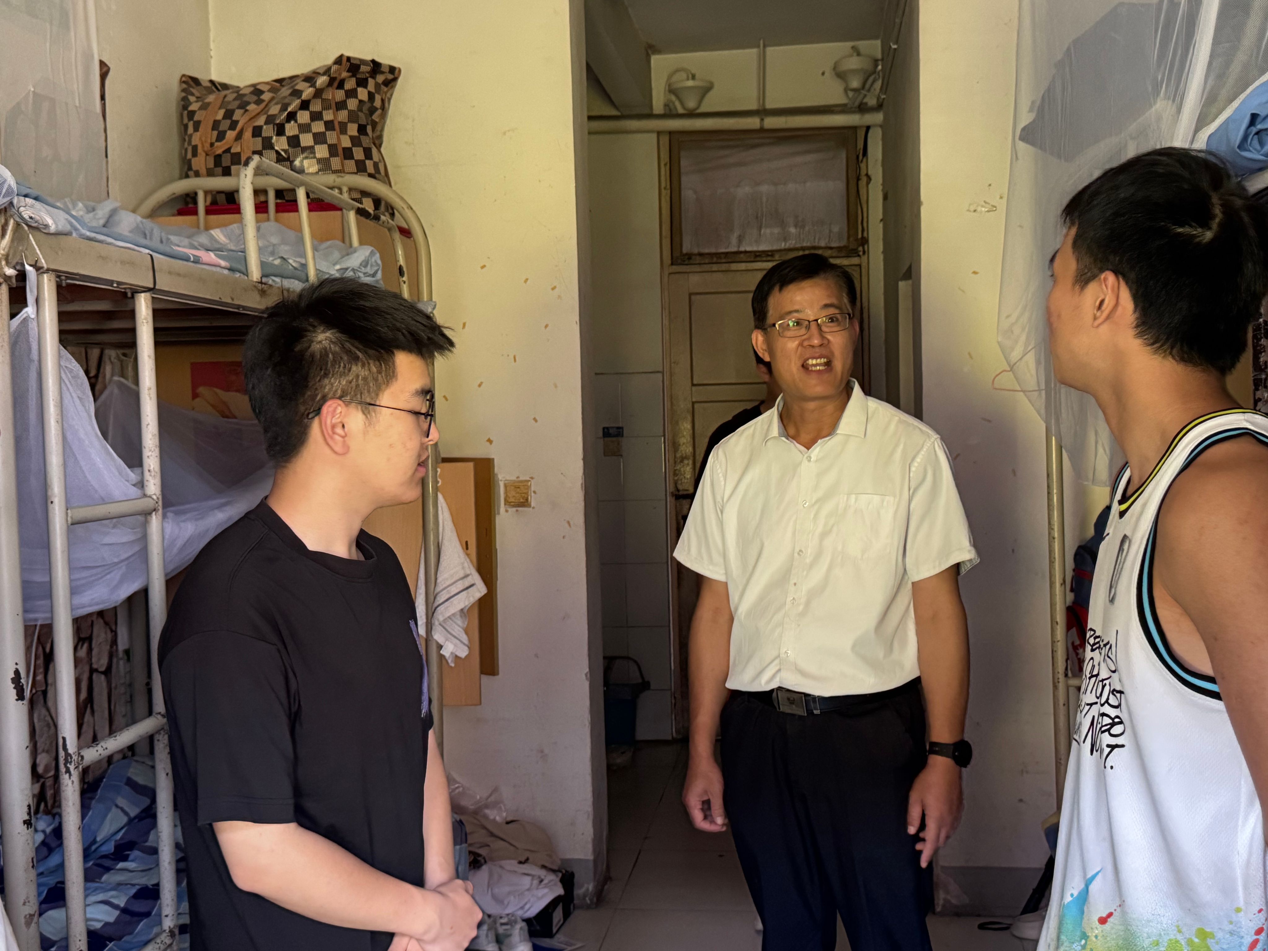 盛夏蝉鸣起,又是一年毕业季,同时期末考试也即将拉开帷幕。为深入了解毕业生学习生活状态,为同学们加油鼓劲,近日,物理与电子工程学院党委副书记李洪波和教师代表一行深入学生宿舍开展走访慰问活动,为即将踏上人生新征程的毕业生送去温暖与关怀,也为备战期末考试的学子们送上鼓励与支持。