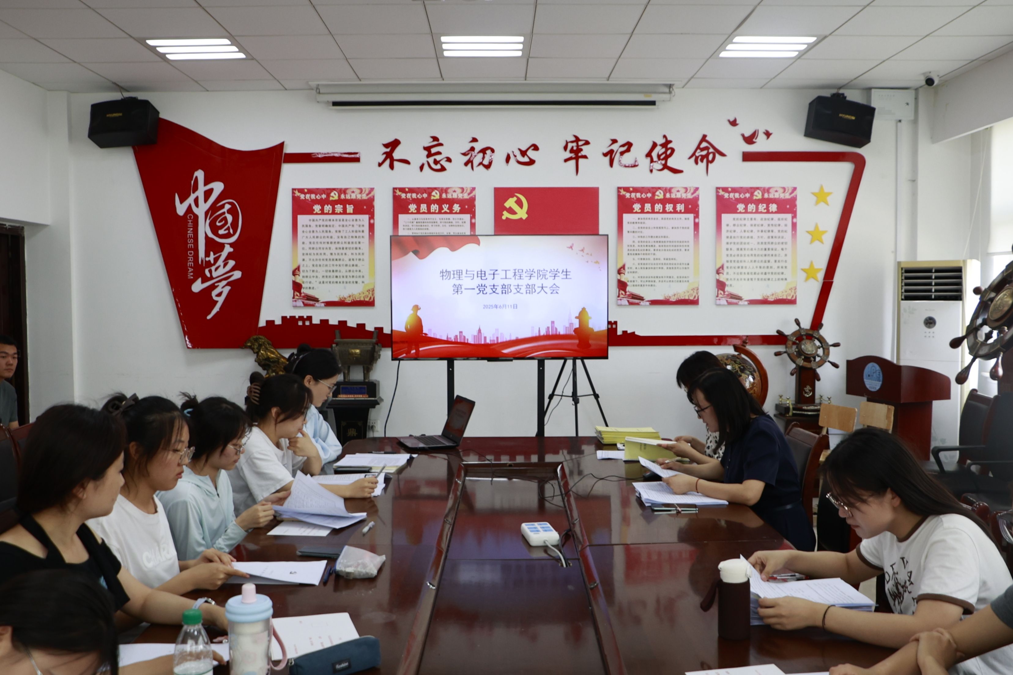 6月11日,物理与电子工程学院学生第一党支部召开接收预备党员大会,支部全体党员、发展对象及入党积极分子代表参加会议,会议由党支部书记赵杨洋主持。此次大会严格按照党组织接收预备党员程序进行,旨在为党组织注入新鲜血液,壮大党员队伍。